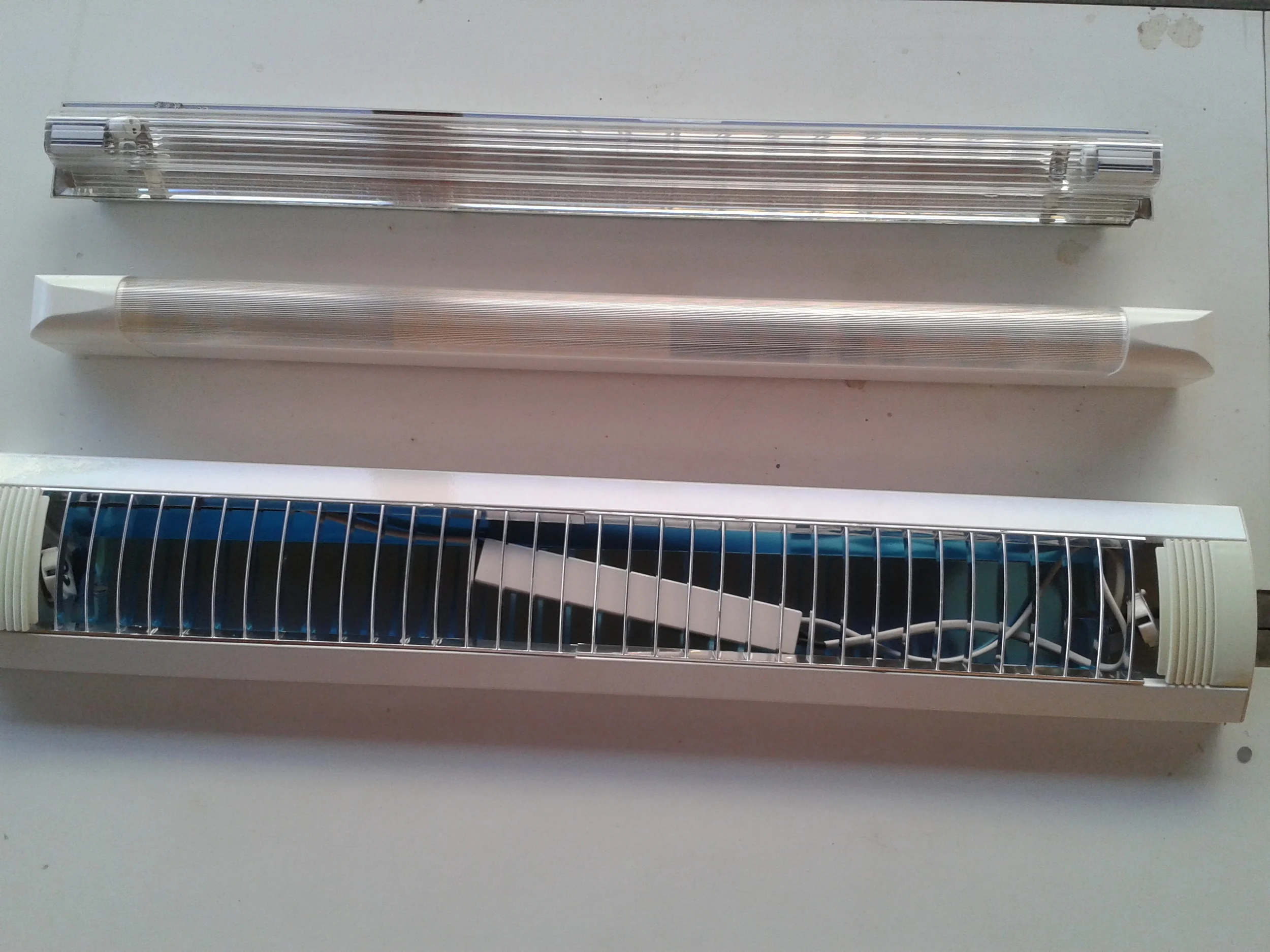 Le premier (en haut) comporte un mini-tube fluorescent spécifique; les 2 autres contiennent des tubes fluorescents standards de 60 cm.